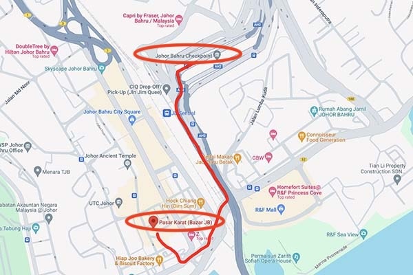 Travel Time from Singapore to Johor Premium Outlets (JPO)